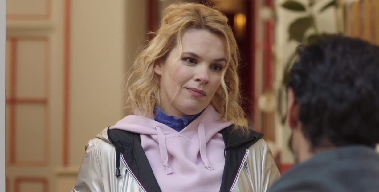 Au fil de la discussion, Roxane précise également que leur interlocuteur souhaite recevoir de nouvelles photos de Karim, des clichés plus valorisants et soigneusement travaillés. L’idée est de proposer des images élégantes, capables de renforcer la crédibilité du personnage qu’il doit incarner. Elle évoque donc l’organisation d’un shooting, avec une mise en scène étudiée et une tenue choisie avec attention. Karim, un peu mal à l’aise, insiste cependant sur ses limites et rappelle qu’il ne veut pas poser d’une manière trop exposée, préférant rester dans quelque chose de sobre et respectueux.