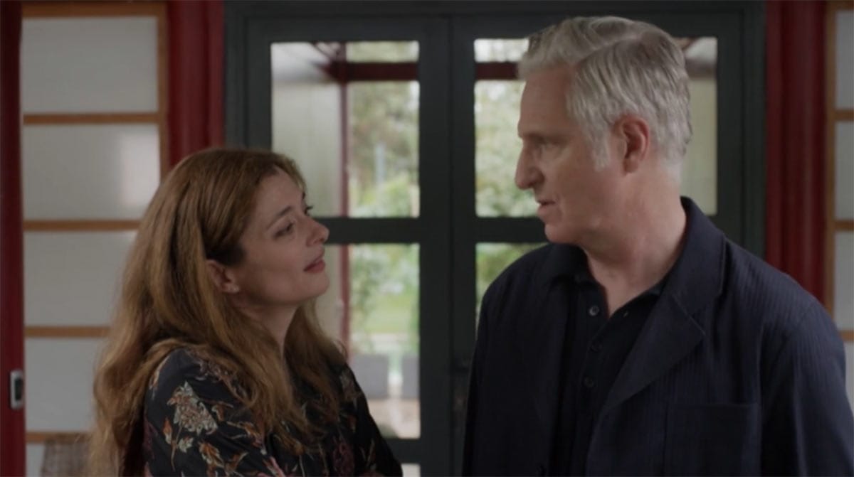 Becker n’en démord pas et annonce vouloir s’absenter quelques week-ends par an pour profiter de ce chalet à la montagne. Il tente de se montrer persuasif. « Je suis sûr que tu vas l’adorer », souligne-t-il. Mais son argumentaire reste sans effet sur la cheffe de service, qui vient pourtant d’accueillir Jérémy (Ali Hasniou) dans son service. Elle commence à perdre patience. Becker (Yvon Back) insiste malgré la réticence de son épouse, ce qui a le don de l’agacer. Janet enlève alors la nappe d’un geste sec et finit par exploser face à son mari. « Tu me fatigues », lâche-t-elle.